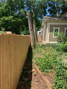 4. Judge Boles, or more likely her agents, clearly trespassed on her neighbor’s property to perpetrate this underhanded task. The photo below clearly shows the trampled garden, and the only way they could bring that large elm down is if they illegally entered that backyard. They certainly weren’t the least bit concerned with the final aesthetic, either.